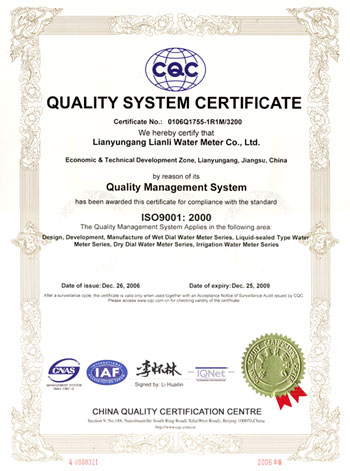 All rights reserved: Lianyungang Lianli Water Meter Co.,Ltd. Tel: 0086-518-82341113 Fax: 0086-518-82340789