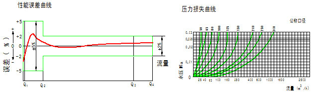 示值誤差限:從分界流量到過(guò)載流量為 ±3%; 從最小流量到分界流量(不包括分界流量)為±5%。