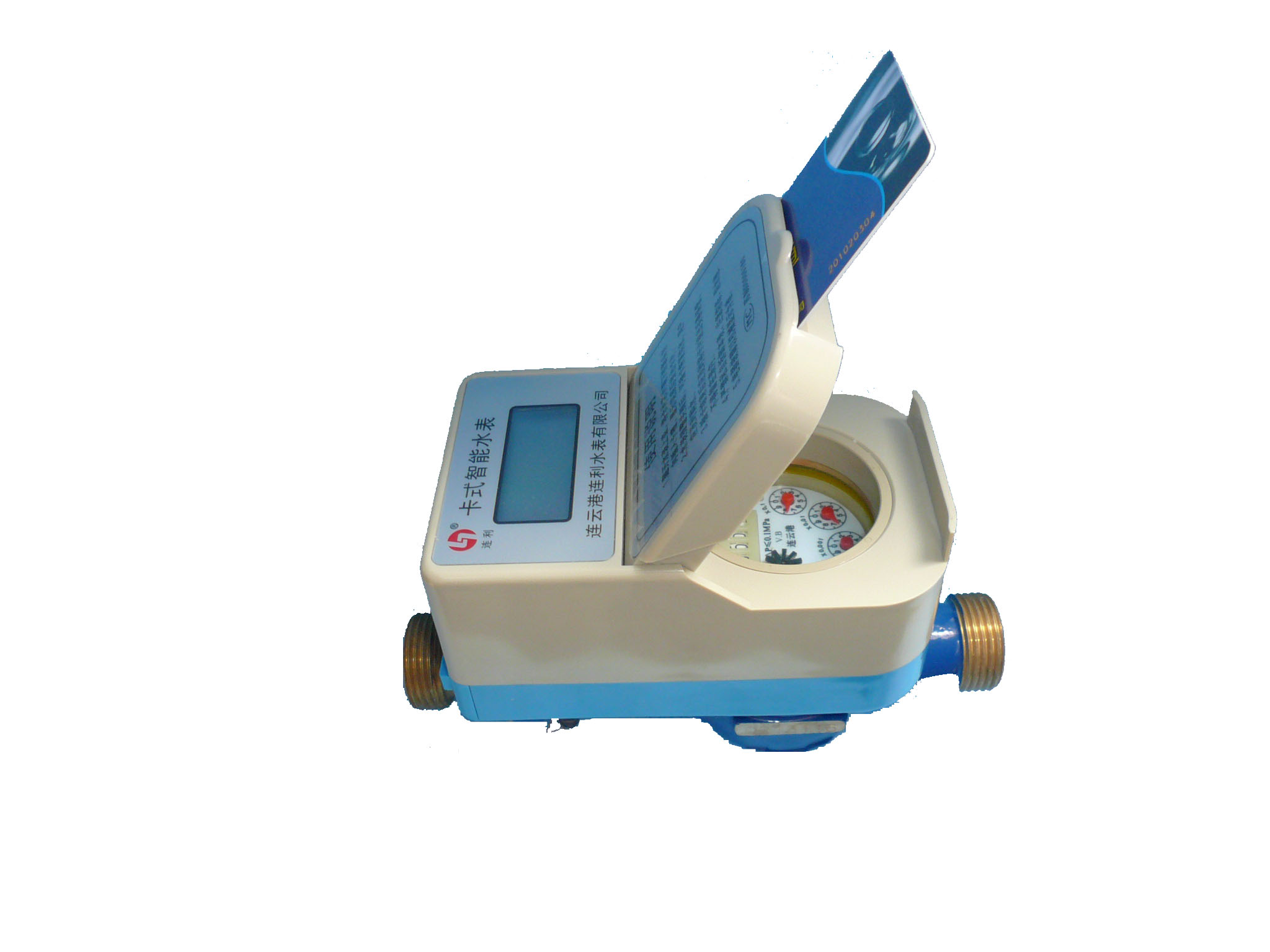 將充值后的用戶卡按箭頭指示方向(金屬觸點朝下)插入水表,當(dāng)屏幕顯示新購結(jié)束后,拔出卡,所購水量已讀入水表。原來水表閥關(guān)時,此時自動打開(錯卡提示除外)。
