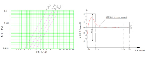 示值誤差限與流量曲線(xiàn)FLOW-ERROR CURVE 壓力損失曲線(xiàn) Pressure loss curve