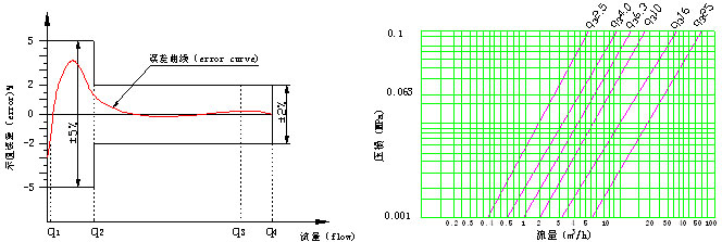 示值誤差限與流量曲線FLOW-ERROR CURVE 壓力損失曲線 Pressure loss curve