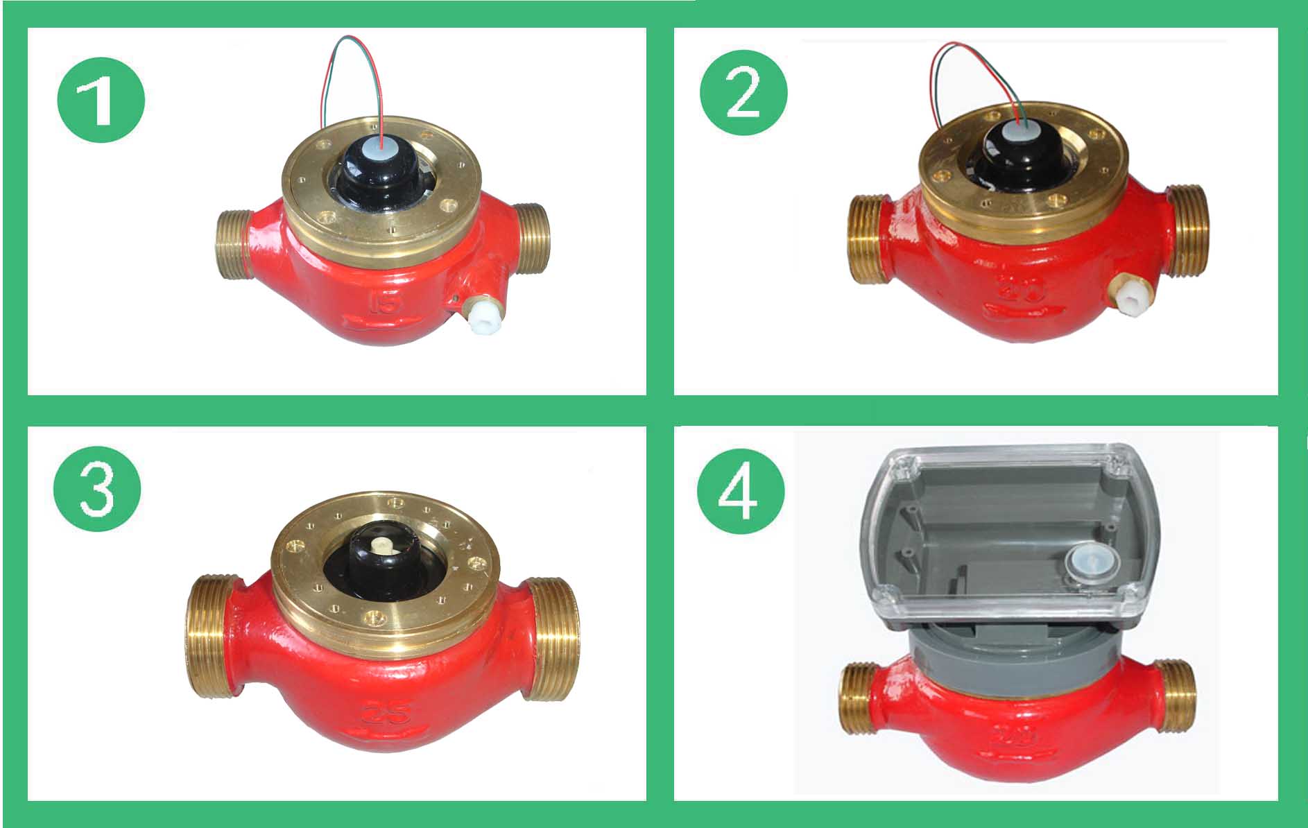 DS97TAR多流束有磁熱量表流量計的結(jié)構(gòu)如圖,其工作原理是:熱水進(jìn)入流量計,經(jīng)進(jìn)水導(dǎo)向孔沖擊計量腔內(nèi)的葉輪旋轉(zhuǎn),再經(jīng)出水導(dǎo)向孔流出流量計。葉輪上面嵌有磁鋼隨葉輪旋轉(zhuǎn),在隔板上端的韋根遠(yuǎn)傳組件,接受葉輪旋轉(zhuǎn)的周期信號。其殼體采用優(yōu)質(zhì)黃銅,經(jīng)鑄造、數(shù)控機床和組合機床加工,機械強度好、尺寸精度穩(wěn)定一致,塑料零件選用進(jìn)口的高強度耐熱工程塑料,密封件采用優(yōu)質(zhì)耐熱材料。因此,該流量計完全能夠適應(yīng)國內(nèi)供熱系統(tǒng)的惡劣工作環(huán)境。