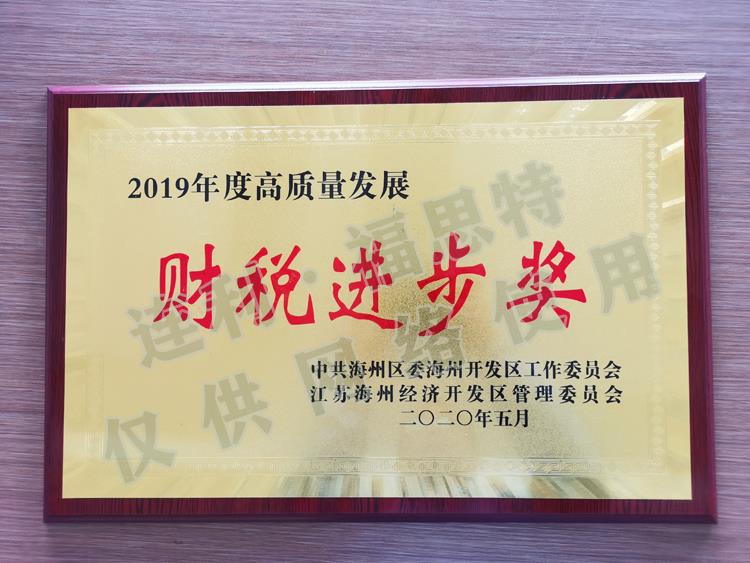 會議觀看了海州開發(fā)區(qū)2019年工作紀(jì)錄片,宣讀2019年度企業(yè)特殊貢獻(xiàn)獎(jiǎng)、財(cái)稅貢獻(xiàn)獎(jiǎng)、財(cái)稅進(jìn)步獎(jiǎng)、企業(yè)成長獎(jiǎng)、安全生產(chǎn)主體責(zé)任落實(shí)獎(jiǎng)等表彰決定,并舉行頒獎(jiǎng)儀式。其中連云港連利·福思特表業(yè)有限公司榮獲2019年度高質(zhì)量發(fā)展“財(cái)稅進(jìn)步獎(jiǎng)”。