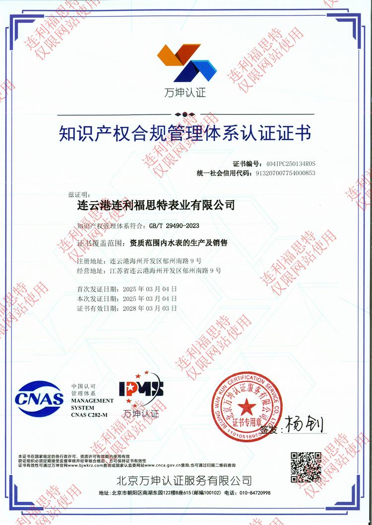 知識產(chǎn)權(quán)合規(guī)管理體系認證證書