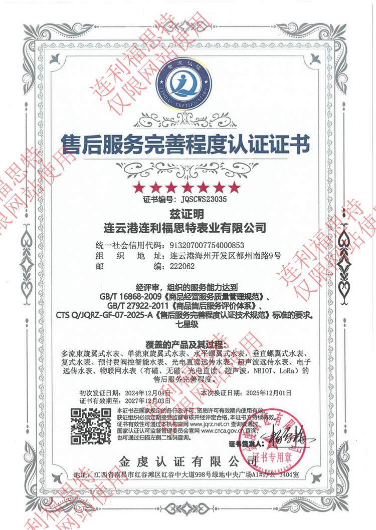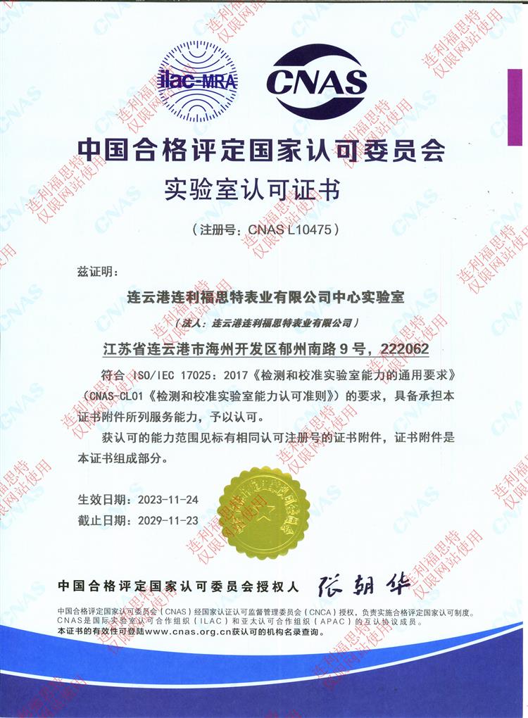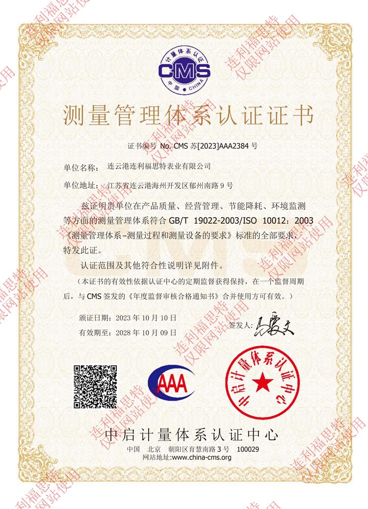 測量管理體系認證證書