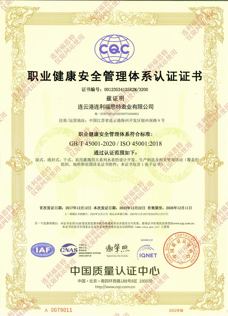 職業(yè)健康安全管理體系認證證書